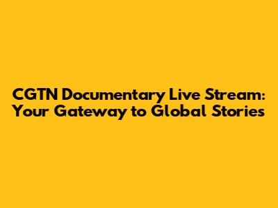 CGTN Documentary Live Stream: Watch Now!
