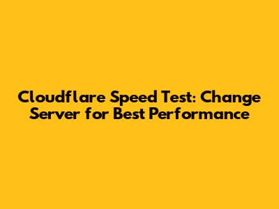 Cloudflare Speed Test: Change Server For Best Performance