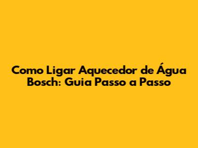 Como Ligar Aquecedor De Água Bosch: Guia Passo A Passo