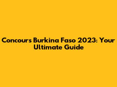 Concours Burkina Faso 2023: Your Guide To Success