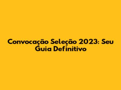 Convocação Seleção 2023: Guia Completo E Dicas Essenciais
