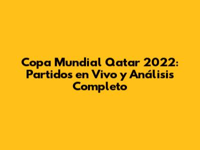 Copa Mundial Qatar 2022: Partidos En Vivo Y Análisis Completo