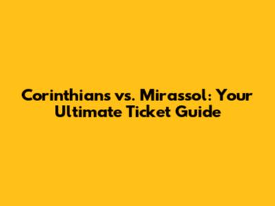 Corinthians Vs. Mirassol: Ticket Guide & Matchday Info