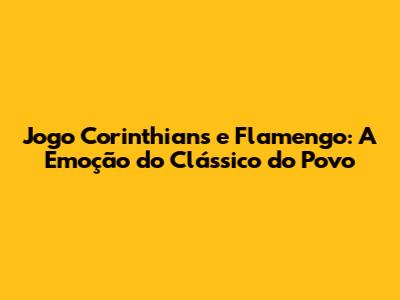 Jogo Corinthians e Flamengo: A Emoção do Clássico do Povo