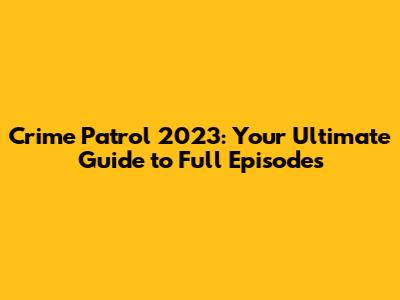 Crime Patrol 2023: Watch Full Episodes Now