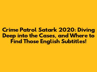 Hey everyone, are you ready to dive into the gripping world of Crime Patrol Satark 2020? This show has become a staple for many, offering a raw and unflinching look at real-life crimes across India. It's a show that grabs you, makes you think, and sometimes, even keeps you up at night! But hey, that's the nature of true crime, right? In this article, we'll break down everything you need to know about Crime Patrol Satark 2020, including where you can watch it, details about the cases, and most importantly, how to find those elusive English subtitles. Let's get started, guys!