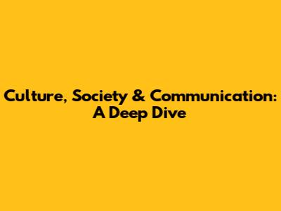 Culture, Society & Communication: A Deep Dive