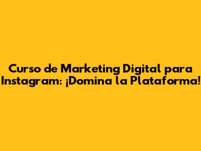 Curso De Marketing Digital Para Instagram: ¡Domina La Plataforma!
