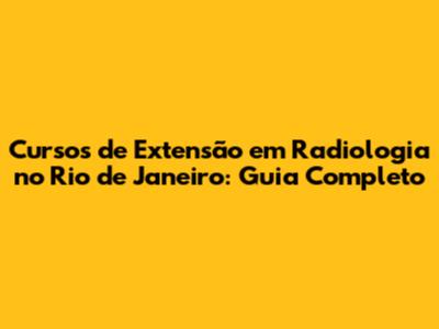Cursos De Extensão Em Radiologia No Rio De Janeiro: Guia Completo