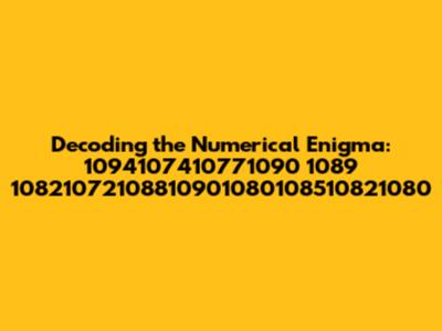 Hey guys! Ever stumbled upon a string of numbers that just looked like pure gibberish? Well, today we’re diving deep into one such numerical mystery: 1094107410771090 1089 10821072108810901080108510821080. It might seem like a random sequence, but there’s a good chance it’s hiding a secret message. So, buckle up, and let's unravel this numerical knot together!