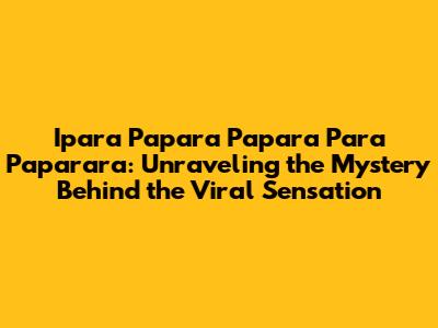 Decoding 'Ipara Papara': The Viral Sensation Explained