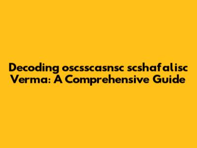 Decoding 'oscsscasnsc Scshafalisc Verma': A Comprehensive Guide