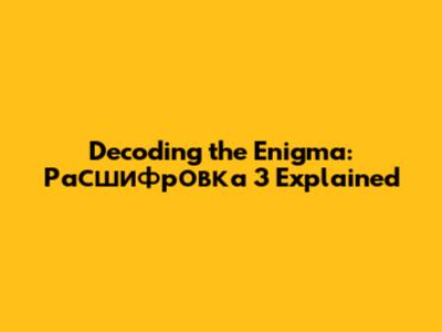 Decoding The Enigma: Расшифровка 3 Explained