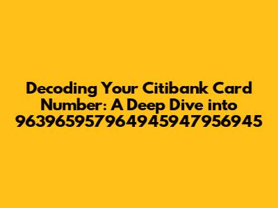 Hey there, fellow finance enthusiasts! Ever looked at your Citibank card number and wondered what all those digits mean? You're not alone! It's like a secret code, and today, we're going to crack it. Let's talk about the specific number: 963965957964945947956945. While it's unlikely this exact sequence is a real card number (for privacy reasons, of course!), we'll use it as a stand-in to understand the structure. This article will break down the components and help you understand the magic behind your Citibank card. Understanding the card number is more than just memorizing a sequence; it provides valuable insight into the world of payment processing, fraud prevention, and overall card security. So, grab a coffee, and let's decode this mystery together! We'll explore the significance of each digit, the role of different numbering systems, and why this information is crucial for your financial well-being. Think of this as your personal finance decoder ring! Understanding how your card number is structured will help you navigate the financial world with more confidence and awareness. It will also help you identify potential security risks and protect yourself from fraud. Knowing the ins and outs of your Citibank card is the first step toward becoming a savvy consumer.