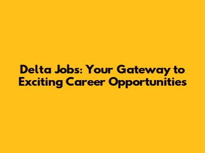 Delta Jobs: Your Gateway To Exciting Career Opportunities