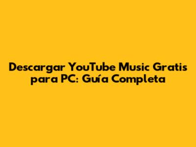 Descarga YouTube Music Gratis Para PC: Guía Completa