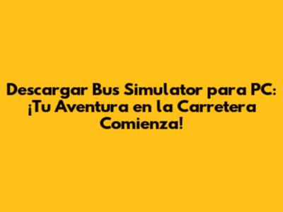 Descargar Bus Simulator Para PC: Guía Completa