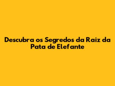 Descubra Os Segredos Da Raiz Da Pata De Elefante
