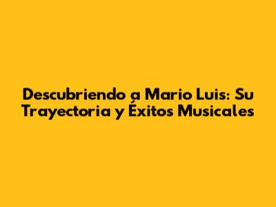 Descubriendo A Mario Luis: Su Trayectoria Y Éxitos Musicales