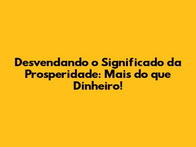 Desvendando O Significado Da Prosperidade: Mais Do Que Dinheiro!