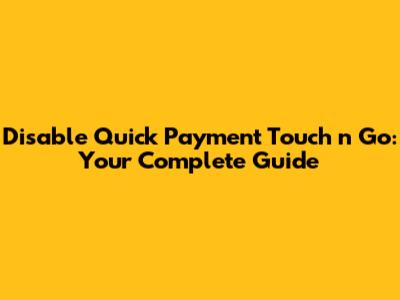 Disable Quick Payment Touch 'n Go: A Simple Guide