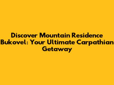 Why Choose Mountain Residence Bukovel for Your Next Trip?