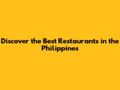 Discover The Best Restaurants In The Philippines