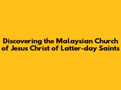 Discovering The Malaysian Church Of Jesus Christ