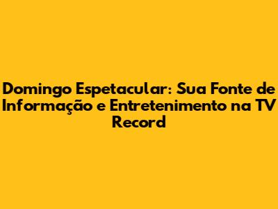 Domingo Espetacular é um dos programas de televisão mais assistidos no Brasil, transmitido pela TV Record todos os domingos. Se você é fã de jornalismo investigativo, reportagens especiais e entretenimento de qualidade, este é o programa ideal para você. Neste artigo, vamos mergulhar no universo do Domingo Espetacular, explorando sua história, formato, destaques e como você pode assistir ao vivo, hoje mesmo, para não perder nenhuma novidade. Prepare-se para uma jornada informativa e envolvente!