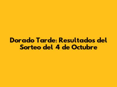 Dorado Tarde: Resultados Del Sorteo Del 4 De Octubre
