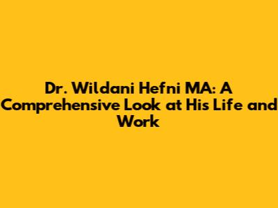 Dr. Wildani Hefni MA: Biography, Education, And Career