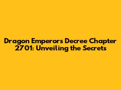 Hey guys, buckle up, because we're diving deep into the thrilling world of Dragon Emperor's Decree, specifically Chapter 2701! This chapter is a real game-changer, packed with juicy revelations and heart-stopping moments that will leave you on the edge of your seat. We're going to break down all the key elements, explore the major plot points, and discuss the implications for the future of our favorite characters. So, grab your snacks, get comfortable, and let's unravel the mysteries hidden within this epic chapter. We'll be talking about everything from power struggles and hidden identities to epic battles and unforeseen alliances. Get ready for a wild ride, because Chapter 2701 is not messing around! We will also talk about Dragon Emperor's Decree, exploring some of the great characters in the chapter, like the Emperor and more.