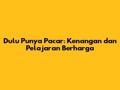 Dulu Punya Pacar: Kenangan Dan Pelajaran Berharga
