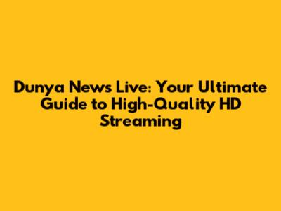 Dunya News Live: High-Quality HD Streaming Guide