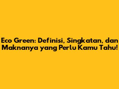 Eco Green, istilah yang semakin sering kita dengar, terutama dalam konteks isu lingkungan dan keberlanjutan. Tapi, sebenarnya apa sih Eco Green itu? Apakah ini hanya sekadar tren ataukah ada makna yang lebih dalam? Artikel ini akan mengupas tuntas tentang Eco Green, mulai dari definisi, singkatan, hingga penerapannya dalam berbagai aspek kehidupan.