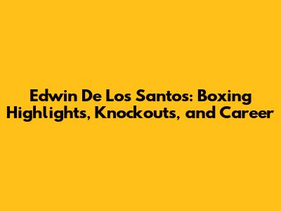Edwin De Los Santos: Boxing Highlights, Knockouts, And Career