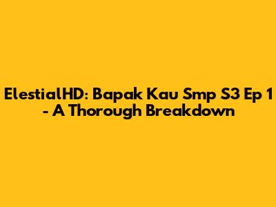 Hey guys! Let's dive deep into the world of ElestialHD's Bapak Kau Smp S3 Ep 1. This isn't just a casual watch; we're talking about a whole episode that's ripe for analysis, discussion, and a good ol' recap. Buckle up, because we're about to unpack everything this episode has to offer, from the smallest details to the broader themes and the stuff that makes us go “hmm…”