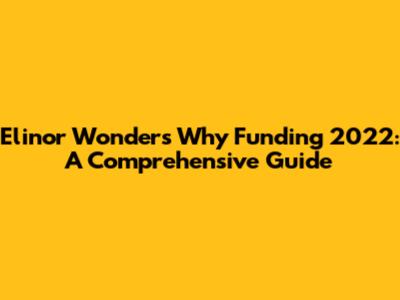 Elinor Wonders Why Funding 2022: A Comprehensive Guide