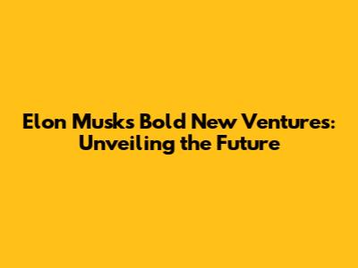 Elon Musk's Bold New Ventures: Unveiling The Future