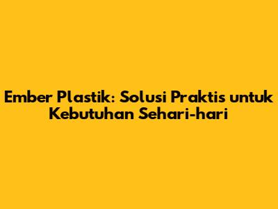 Ember Plastik: Solusi Praktis Untuk Kebutuhan Sehari-hari