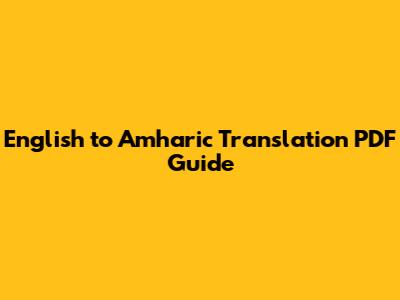 English To Amharic Translation PDF Guide