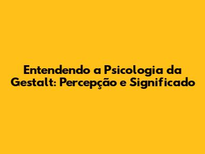 Entendendo A Psicologia Da Gestalt: Percepção E Significado