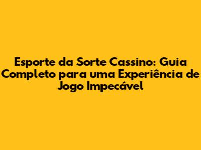 Esporte Da Sorte Cassino: Seu Guia Completo Para Jogar