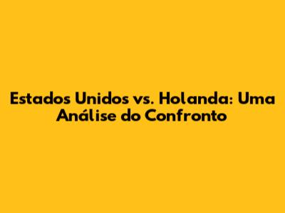 Estados Unidos Vs. Holanda: Uma Análise Do Confronto