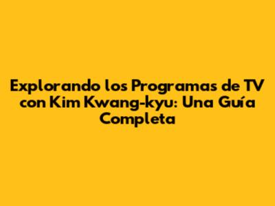 Explorando Los Programas De TV Con Kim Kwang-kyu: Una Guía Completa