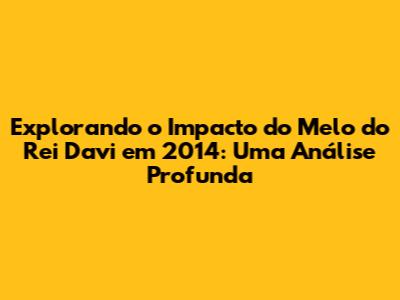 Explorando O Impacto Do Melo Do Rei Davi Em 2014: Uma Análise Profunda