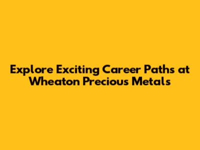 Explore Exciting Career Paths At Wheaton Precious Metals