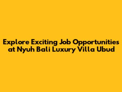 Explore Exciting Job Opportunities At Nyuh Bali Luxury Villa Ubud