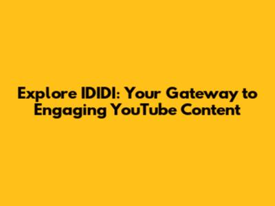 Explore IDIDI: Your Gateway To Engaging YouTube Content