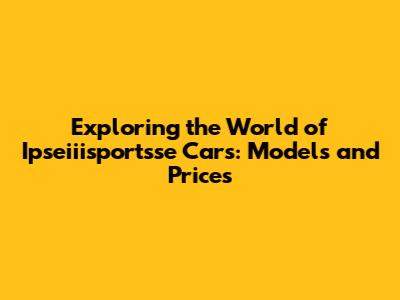 Explore The World Of Ipseiiisportsse Cars: Models And Prices